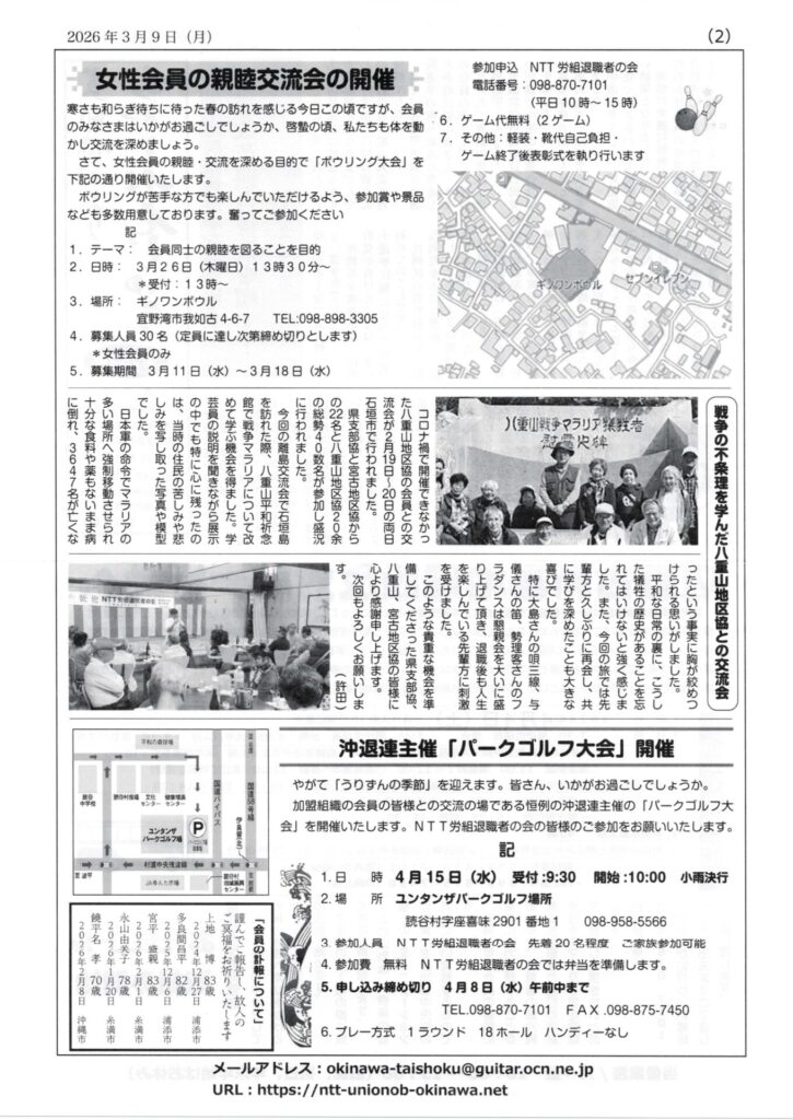 ちゃーがんじゅうー 2026年3月9日(火)発行 第252号 2026 4/04 支部協だより・ちゃーがんじゅう 2026年3月9日2026年4月4日 過去の記事を閲覧するには Post Views: 197 目次 支部協だより・ちゃーがんじゅう よかったらシェアしてね! URLをコピーしました! URLをコピーしました! お元気コール開始!支部の電番登録してね。 098-870-7101 あれから1年26春闘ボウリング大会 この記事を書いた人 南の島の夢老い人 関連記事 ちゃーがんじゅうー 2026年4月7日(火)発行 第253号 2026年4月7日 ちゃーがんじゅうー 2026年1月30日(金)発行 内部資料 第251号 (1)と(2) 2026年2月3日 ちゃーがんじゅうー 2026年1月1日(木)発行 第250号 (1)と(2)です。 2026年1月8日 ちゃーがんじゅうー 2025年12月2日(火)発行 第249号 2025年12月2日 ちゃーがんじゅうー 2025年11月4日(火)発行 第248号 2025年11月4日 ちゃーがんじゅう 2025年9月30日(火)発行 第247号 2025年10月1日 ちゃーがんじゅう 2025年8月28日(木)発行 第246号 2025年9月1日 ちゃーがんじゅう 2025年7月31日発行 第245号 2025年8月4日 コメント コメントする コメントをキャンセルコメント ※ 名前 ※ メール ※ サイト 次回のコメントで使用するためブラウザーに自分の名前、メールアドレス、サイトを保存する。 Δ