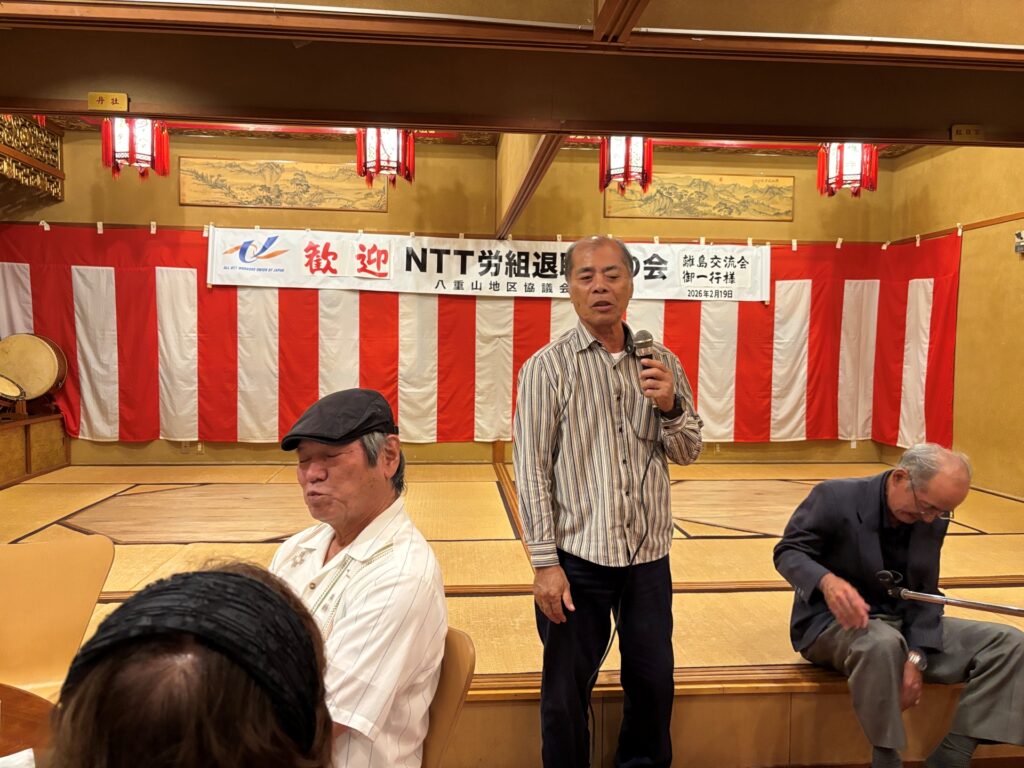 八重山観光・地区交流会 2026 2/20 支部協事務局よりお知らせ 2026年2月20日 2026年2月19日(木)~20日(金)に八重山の旅で沖縄本島、宮古島から22名の参加者があり観光と懇親会がありました。 STEP八重山平和祈念館で見学をしました。 STEP祈念館前で集合写真。 STEP懇親会 STEP懇親会です。 STEP STEP STEP STEP2日目石垣島観光 STEP川平湾 STEP Post Views: 22 目次 支部協事務局よりお知らせ よかったらシェアしてね! URLをコピーしました! URLをコピーしました! 衆議院議員選挙を振り返る 中道改革連合惨敗を喫す! この記事を書いた人 南の島の夢老い人 関連記事 衆議院議員選挙を振り返る 中道改革連合惨敗を喫す! 2026年2月18日 急げあと3日、団体枠20名中14名の申し込み。23日まで八重山観光旅行!! 2026年1月20日 八重山観光・地区協交流会参加募集!1月23日(金)AMまで定員20名になり次第締め切ります。お早めに!! 2026年1月14日 新サークル紹介 三線サークル「とまり木」、三線サークル(野村) 2025年12月2日 新サークル紹介 八重山地協囲碁愛好会発足 2025年12月1日 第27回定期総会議案書訂正のお知らせ 2025年11月19日 第27回定期総会が10月24日(金)に開催。 2025年8月29日 【緊急】台風接近にともなう情報連絡 2025-7-26 2025年7月26日 コメント コメントする コメントをキャンセルコメント ※ 名前 ※ メール ※ サイト 次回のコメントで使用するためブラウザーに自分の名前、メールアドレス、サイトを保存する。 Δ