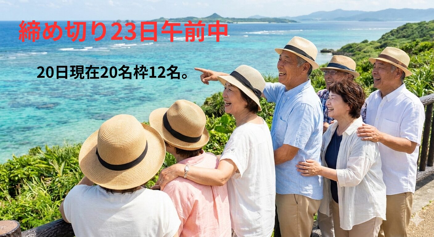 急げあと3日、団体枠20名中14名の申し込み。23日まで八重山観光旅行!!
